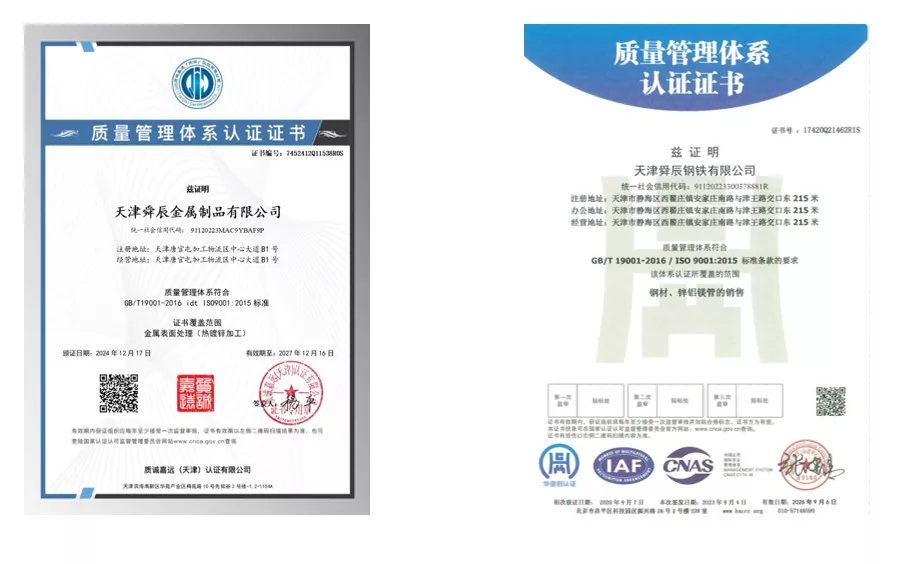 हमें क्यों चुनें? तियानजिन शुनचेंग उद्योग वर्षों से संचित उत्पादन तकनीक का दावा करता है, शून्य डिफ़ॉल्ट और शून्य वार्षिक गुणवत्ता घटनाओं का 12 साल का रिकॉर्ड बनाए रखता है, उत्पाद की गुणवत्ता के लिए एक ठोस आधार रखता है। कंपनी राष्ट्रीय उत्पादन मानकों का सख्ती से पालन करती है और ISO 9000, 3A सिस्टम प्रमाणन और EU CE प्रमाणन रखती है। 12-चरणीय प्रक्रिया और 3-परत पूर्ण निरीक्षण तंत्र के साथ, यह सालाना शून्य गुणवत्ता और सुरक्षा घटनाओं और 12 वर्षों के लिए शून्य ऑर्डर डिफ़ॉल्ट प्राप्त करता है, जो इसकी सिद्ध ताकत का प्रदर्शन करता है। प्रत्येक तैयार उत्पाद को पैकेजिंग और शिपिंग से पहले सुखाने, निरीक्षण और बढ़िया फिनिशिंग से गुजरना पड़ता है, जिससे बेहतर गुणवत्ता सुनिश्चित होती है। कंपनी 300 से अधिक उत्पादन श्रमिकों को रोजगार देती है और ईआरडब्ल्यू स्टील पाइप के 236 विशिष्टताओं का उत्पादन कर सकती है, जो विशिष्टताओं की एक पूरी श्रृंखला की पेशकश करती है और विभिन्न आवश्यकताओं को सटीक रूप से पूरा करने के लिए अनुकूलन का समर्थन करती है।