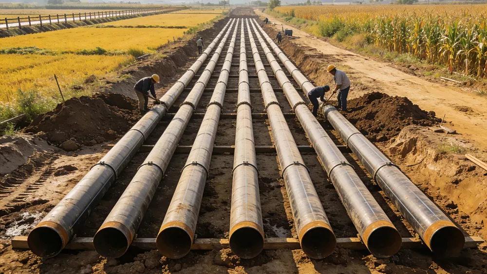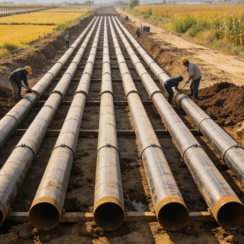 लागू परिदृश्य: बड़े पैमाने पर जल मोड़ परियोजनाएं, जल अंतरण परियोजनाएं, बाढ़ नियंत्रण और जल निकासी परियोजनाएं, खेत की सिंचाई के लिए मुख्य पाइपलाइन, पीने के पानी के लिए जल आपूर्ति परियोजनाएं, द्वीप जल आपूर्ति परियोजनाएं इत्यादि। मुख्य आवश्यकताएं उच्च प्रवाह क्षमता, संक्षारण प्रतिरोध और जल दबाव प्रतिरोध हैं। उन्हें नदी तल, नमक-प्रभावित भूमि आदि जैसे जटिल वातावरणों के लिए अनुकूलित किया जा सकता है। वे पानी के कटाव और भूवैज्ञानिक गिरावट का प्रभावी ढंग से विरोध कर सकते हैं, जल संसाधनों के स्थिर संचरण को सुनिश्चित कर सकते हैं और जल संरक्षण परियोजनाओं के सुरक्षित संचालन की गारंटी दे सकते हैं। वे प्रमुख राष्ट्रीय जल संरक्षण परियोजनाओं में महत्वपूर्ण सहायक भूमिका निभाते हैं। दृश्य विवरण: जिंगहाई जल मोड़ परियोजना के निर्माण स्थल पर, मुख्य पाइपलाइन बिछाने के लिए बड़े व्यास वाले सर्पिल पाइप का उपयोग किया जाता है। पाइप नदियों या खेत से होकर गुजरते हैं, और कर्मचारी इंटरफ़ेस सीलिंग उपचार करते हैं। द्वीप जल आपूर्ति परियोजना स्थल पर, समुद्री जल के कटाव को रोकने और द्वीप और मुख्य भूमि के बीच जल संसाधनों के अंतर्संबंध को प्राप्त करने के लिए 3PE जंग-रोधी तकनीक वाले बड़े-व्यास वाले सर्पिल पाइपों का उपयोग किया जाता है।