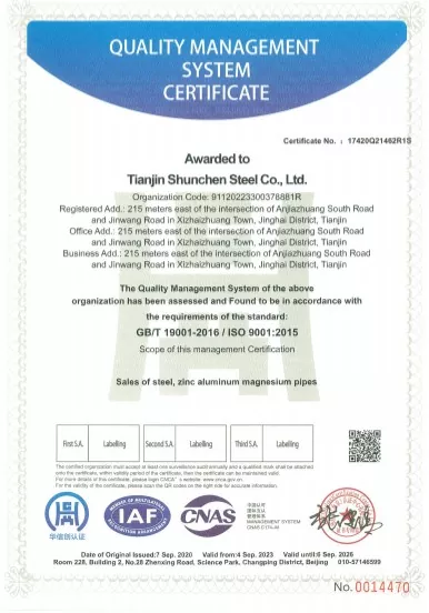 क्या आप किफायती, उच्च गुणवत्ता वाले स्टील की तलाश में हैं? शुनचेन को जांच भेजें। हम आपके थोक ऑर्डर के लिए 24 घंटों के भीतर अनुकूलित समाधान और कम कीमत के कोटेशन प्रदान करते हैं।