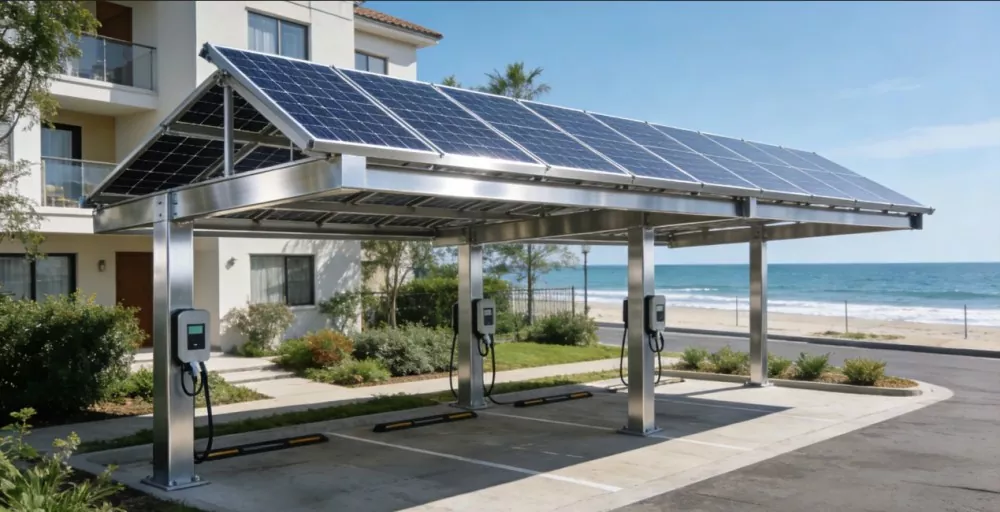 शुनचेन इंडस्ट्रियल का सोलर कारपोर्ट स्ट्रक्चर विविध कार्यों और सटीक स्थिति का दावा करता है। एक बुनियादी पार्किंग सुरक्षा सुविधा के रूप में, यह प्रभावी रूप से धूप, बारिश और बर्फ के दबाव का प्रतिरोध करता है, वाहन पेंट और घटकों के लिए व्यापक सुरक्षा प्रदान करता है और पार्किंग आराम को बढ़ाता है। इसके साथ ही, यह फोटोवोल्टिक पावर स्टेशनों के लिए एक आदर्श मंच के रूप में कार्य करता है, फोटोवोल्टिक मॉड्यूल के लिए एक स्थिर आधार प्रदान करता है, यह सुनिश्चित करता है कि पैनल इष्टतम झुकाव कोण पर सौर ऊर्जा प्राप्त करते हैं, और नींव पर भार को समान रूप से वितरित करते हैं, संरचनात्मक स्थिरता और सुरक्षा की गारंटी देते हैं। इसके अलावा, इस संरचना में शक्तिशाली ऊर्जा रूपांतरण और उपयोग क्षमताएं हैं, जो सौर ऊर्जा को ग्रिड कनेक्शन या स्थानीय खपत के लिए बिजली में परिवर्तित करती है, जैसे चार्जिंग स्टेशनों को बिजली देना, पार्क की बिजली की जरूरतों को पूरा करना, स्वच्छ ऊर्जा प्रतिस्थापन को बढ़ावा देना और बिजली की लागत को कम करना। इससे भी महत्वपूर्ण बात यह है कि यह बहु-परिदृश्य अनुकूलन का समर्थन करता है, और "पार्किंग + बिजली उत्पादन + चार्जिंग" को मिलाकर एक एकीकृत स्मार्ट पार्किंग समाधान बनाने के लिए इसे चार्जिंग स्टेशनों, स्मार्ट लाइटिंग, मॉनिटरिंग सिस्टम आदि के साथ एकीकृत किया जा सकता है।
