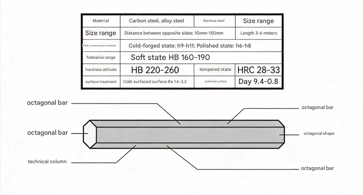 यह मानक नियमित अष्टकोणीय स्टील से भिन्न है, क्योंकि यह एक अष्टकोणीय क्रॉस-सेक्शन और एक असममित संरचना के साथ एक अनुकूलित ठोस धातु प्रोफ़ाइल है, जैसे कि फ्लैट अष्टकोण, विलक्षण अष्टकोण, या कुंजी स्लॉट, तेल स्लॉट और पोजिशनिंग फ्लैट जैसी कार्यात्मक विशेषताएं।